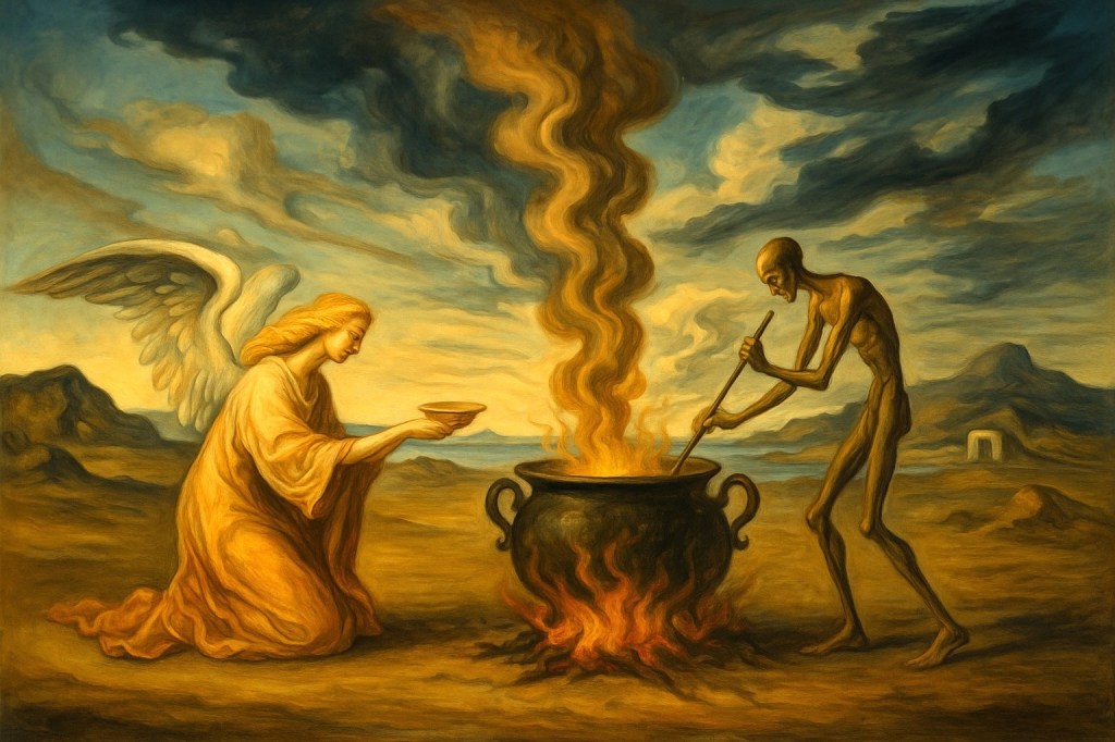 What wicked stew doth we brew? When it receives the Kiss of Divinity, will it be our doing or undoing?